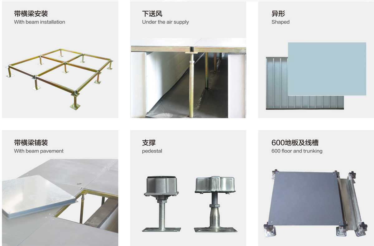 特點:每塊地板任意互換,根據(jù)走線需要任意添加線槽,強弱電獨立路由,布線更具有靈活性,彰顯樓宇智能化。拆卸方便,可重復拆裝,視為可移動資產(chǎn)。