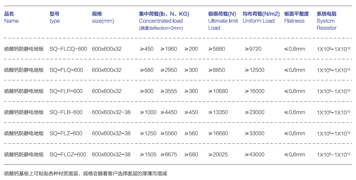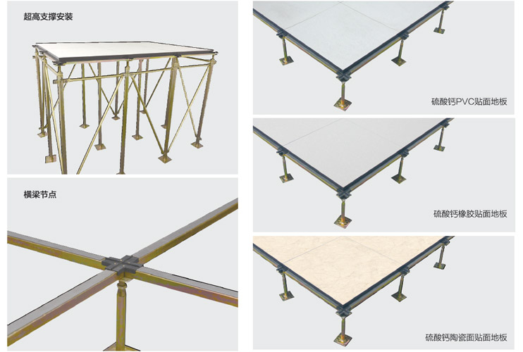 主材:硫酸鈣基板、鍍鋅底板、嵌入式一體注塑邊條、防靜電面層。