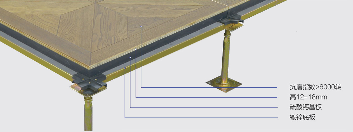 主材:硫酸鈣基板、鍍鋅底板、嵌入式一體注塑邊條、各種實木、強化、木塑、面層。